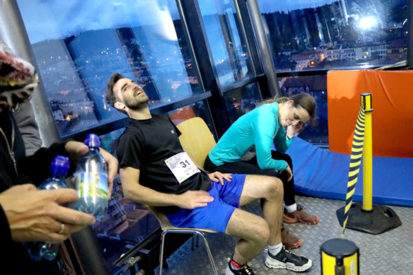 Ce lundi soir 20 octobre, le vent qui balayait la Métropole horlogère a donné des envies de hauteur à la tente du club de foot NE Galaxy qui tenait une petite buvette sur la place Espacité. Aussitôt envolée, aussitôt rattrapée, ouf, plus de peur que de mal. à quelques mètres de là, une autre tente avait des airs de fosse aux lions : celle des vestiaires. Chez les hommes, l’excitation de cette promesse de vertige était palpable. Avec moi dans la « fosse », le sérieux outsider Maël Erard se demande avant le départ quelle est la meilleure technique pour aller en haut de la tour sans faiblir. « Tu en penses quoi ? »