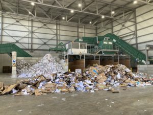 – C’est une question de logistique. Un container rempli avec des gros cartons est vite plein de déchets volumineux, alors qu’il est quasi vide ! Mélanger avec du papier permet de combler les espaces. Toutefois, les gros cartons bruns doivent être déposés en déchetterie où ils sont compactés avec un tasseur à rouleau ou une presse. Le mélange papier / carton est trié dans notre installation de Cottendart grâce à un trieur optique composé d’un scanner et de jets d’air comprimé pour séparer les matières en fonction de leur colorimétrie et de leur grammage.