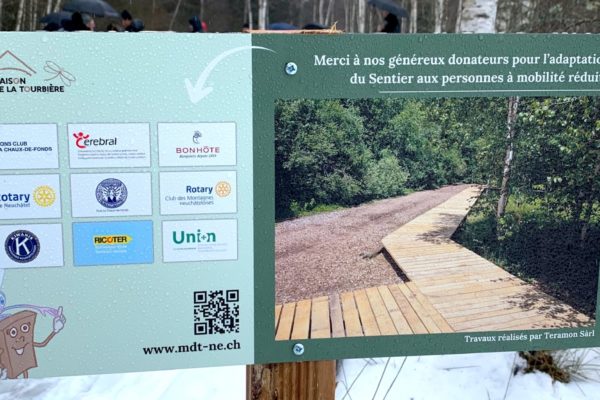 C’est une solidarité d’ampleur neuchâteloise qui s’est mise en marche pour venir en aide à l’association Maison de la Tourbière. Le 6 décembre dernier, les huit cercles cantonaux de la société philanthropique suisse UNION se sont associés au Lions Club et aux Soroptimist de La Chaux-de-Fonds pour participer au financement du réaménagement du sentier des tourbières des Ponts-de-Martel. Les philanthropes ont remis un chèque de 13 400 francs.