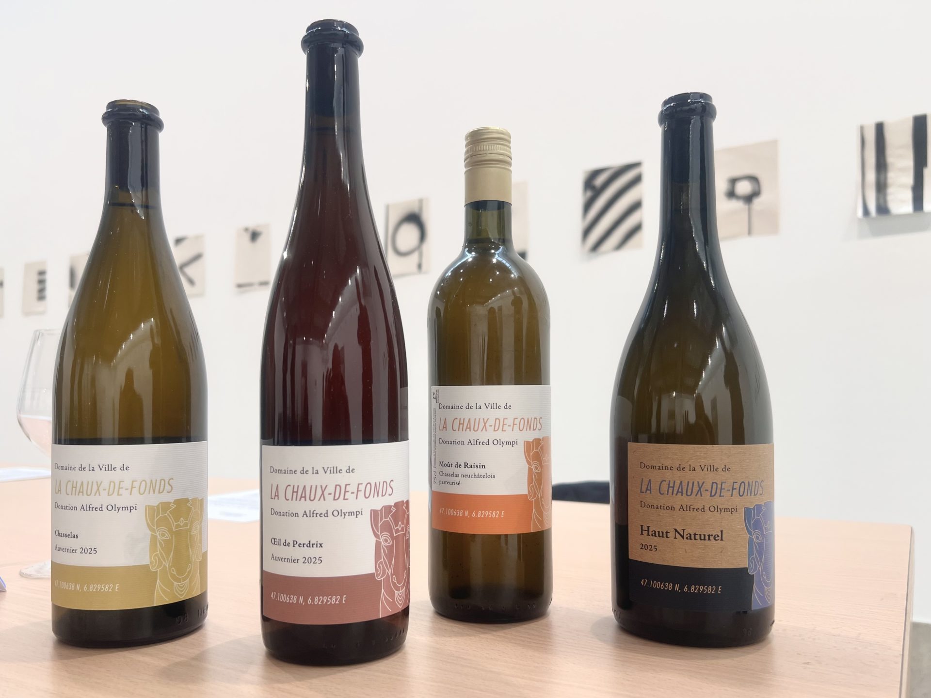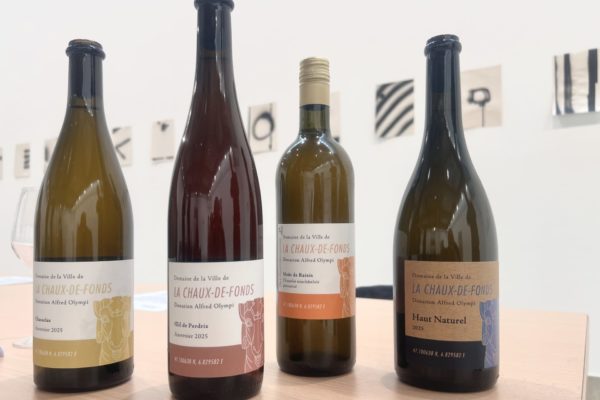 Du vin à la Tchaux, c’est quoi ce binz ? Hormis quelques vignes de passionnés, La Chaux-de-Fonds n’est pourtant pas une commune vinicole ! Faux, depuis 1982, elle bénéfice de la générosité d’Alfred Olympi qui légua deux hectares de vignes laissés aux bons soins du Domaine de Montmollin. Chaque année, la récolte permet de produire 10’000 bouteilles dont 1’200 flacons de Chasselas non-filtré. Qui dit bouteille, dit étiquette millésimée et… présentation au public.