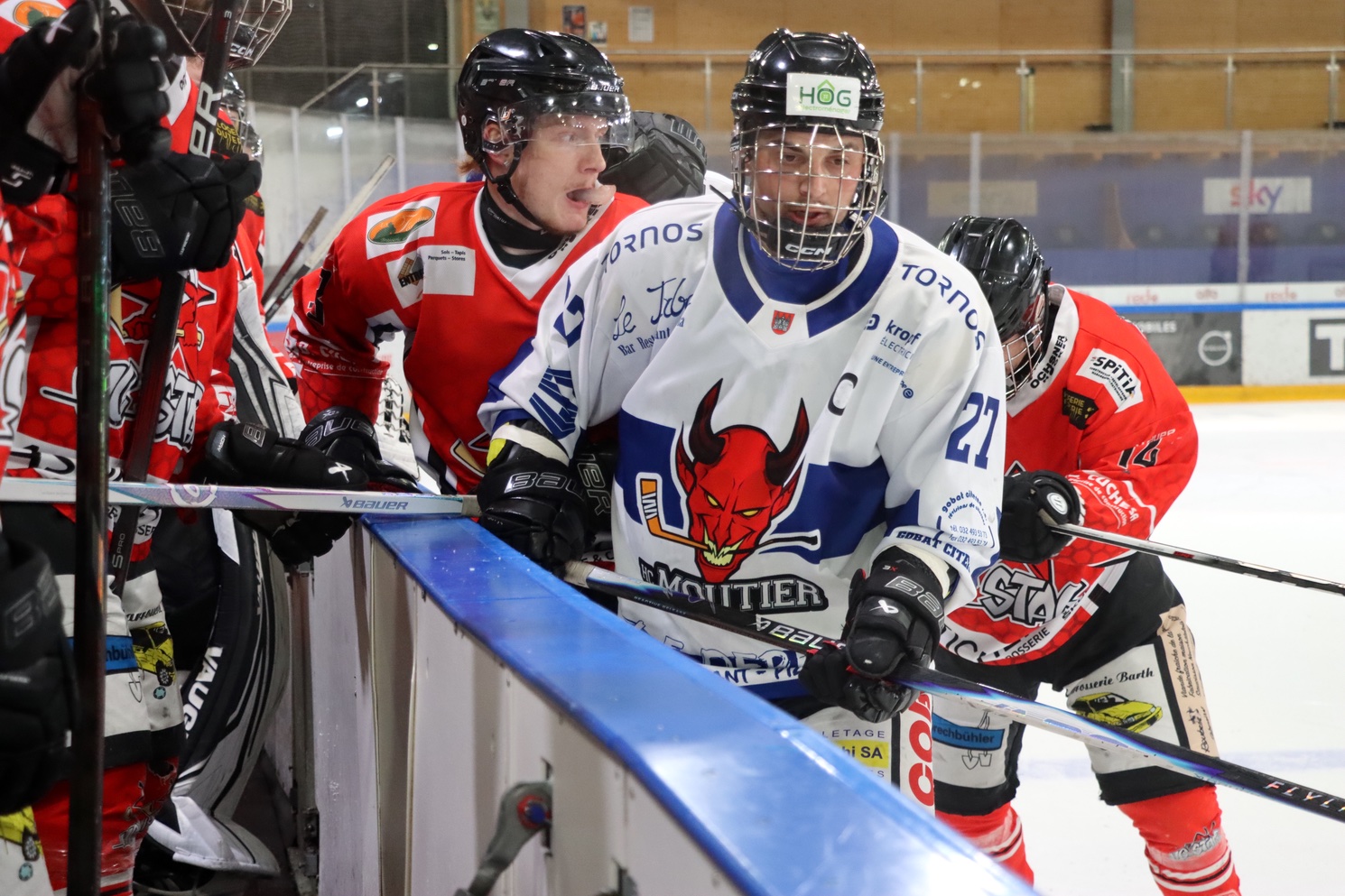 Star a effectivement répondu présent sur la glace, dominant largement les débats dans la période médiane. Johann Duplan – bien décalé par Robin Fuchs – puis Romain Fleischer ont remis les compteurs à zéro. A la mi-match, tout restait donc encore à faire de chaque côté. Moutier est une équipe qui sait se relever et l’égalisation ne l’a pas anéanti pour autant. Dans un dernier « vingt » équilibré, Moutier a repris les devant à 11 tours d’horloge de la fin du match. Star a répliqué par Fuchs (poteau) puis par Esteban Willemin (penalty manqué) mais « ça n’a pas voulu entrer ». Simple manque de chance ? Non, il aurait aussi fallu être un peu plus percutant en avantage numérique pour espérer mieux. Finalement, Moutier a fait la différence dans les toutes dernières secondes (59’33 dans la cage vide et 59’46).