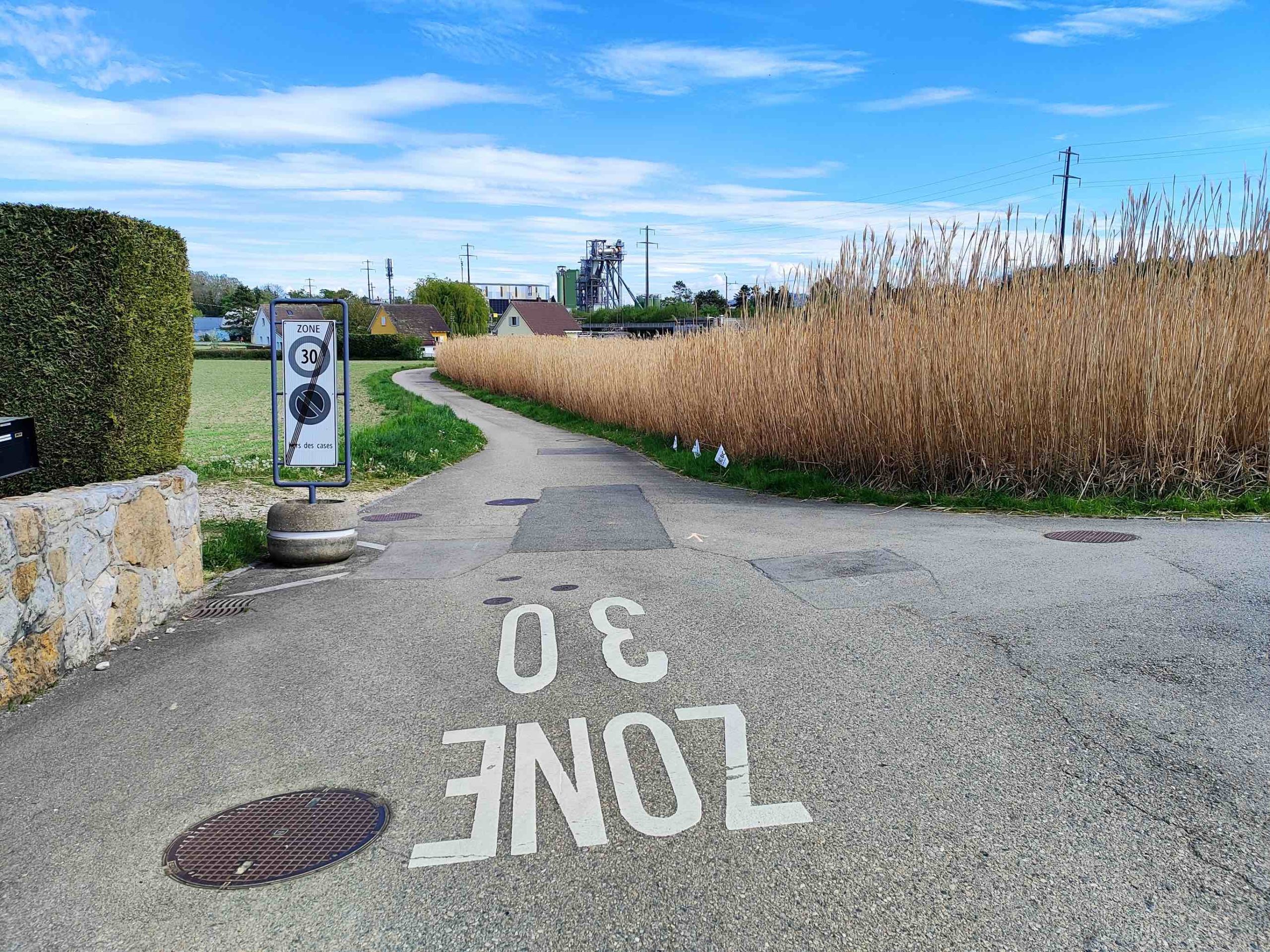 Après quatre kilomètres, vous quitterez la compagnie de la Thielle pour rejoindre une route plus urbaine, passer sous le pont où passe l’autoroute en direction de la raffinerie de Cressier avant d’entrer dans le village de Wavre (au 5e km). Ce secteur est le premier qui se fait sur un faux-plat montant, avec une inclinaison un peu plus marqué en seconde partie de secteur.