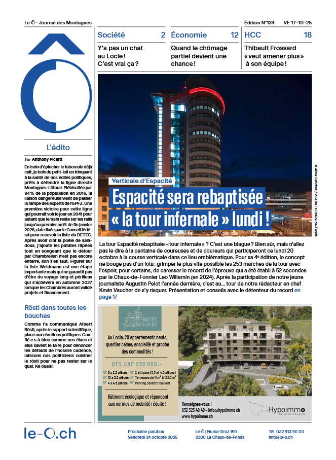 La tour Espacité rebaptisée « tour infernale » ? C’est une blague ? Bien sûr, mais n’allez pas le dire à la centaine de coureuses et de coureurs qui participeront ce lundi 20 octobre à la course verticale dans ce lieu emblématique. Pour sa 4e édition, le concept ne bouge pas d’un iota : grimper le plus vite possible les 253 marches de la tour avec l’espoir, pour certains, de caresser le record de l’épreuve qui a été établi à 52 secondes par le Chaux-de-Fonnier Leo Willemin (en 2024). Après la participation de notre jeune journaliste Augustin Pelot l’année dernière, c’est au… tour de notre rédacteur en chef Kevin Vaucher de s’y risquer. Présentation et conseils avec le détenteur du record